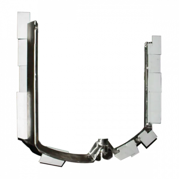 The helical sweep blade is used in conjunction with scrapers to help move the product off the tank wall and combine it with the material in the center of the tank. It also includes two spiral risers that extend from the bottom horizontal stabilizer to the top of the vertical upright on the opposing side of the blade.